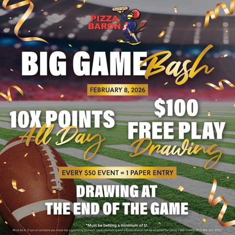 We can’t wait for the Big Game on Sunday! Join us on February 8th and catch every play on our big TVs. Enjoy 10× points on slots, a $100 Free Play drawing, plus tons of food and drink specials all day long.