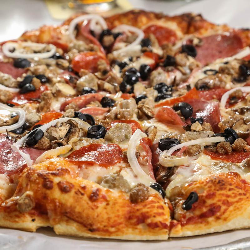 Italian Sausage | Pepperoni | Salami | Beef | Onion | Mushroom | Black Olive | Ham | Green Pepper | Tomato | Pineapple | Jalapeño | Garlic | Chicken | Bacon | Artichokes | Anchovy